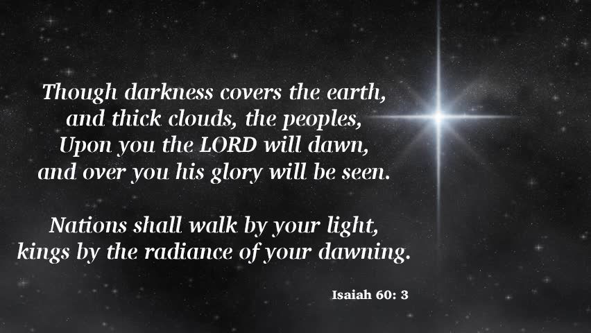 At Christmas the Light shone forth, but dimly, seen only by a few around the crib: Mary and Joseph and the shepherds. But at Epiphany the Light bursts forth to all nations and the prophecy is fulfilled: "The Gentiles shall walk in Thy light, and kings in the brightness of Thy rising."