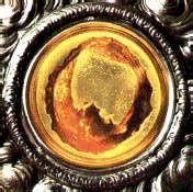 In the 8th-century, a Basilian priest was celebrating Mass in Lanciano, Italy. As he was at the altar, he doubted that Jesus was truly present in the Eucharist. When he said the words of consecration, the Eucharist transformed in front of his eyes. The Host visibly turned into Flesh, and the Consecrated Wine into Blood, which later coagulated into five globules.